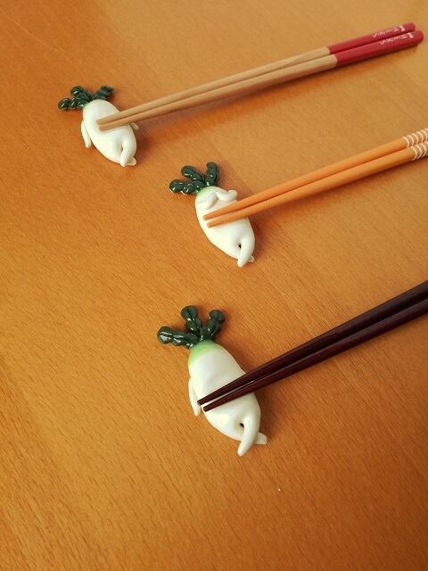 収穫のときに時々まじっている足の付いた大根がとても愛らしく、面白いと思っていたので陶土で箸置きにしてみました♪